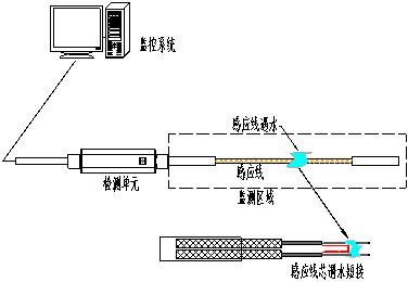 当有液体与液冷感应线接触时,液体浸入感应线编织层,使两根感应线芯导通,形成回路,检测模块检测到漏液情况,发出报警信号。